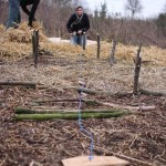 De takkenril begint vorm te krijgen en we hebben een tiental vlierstruikjes uitgeplant. De wind blaast hard door de kruinen van onze populieren.