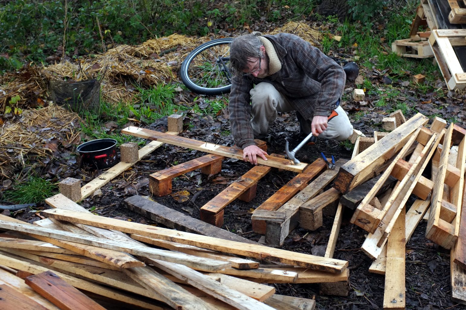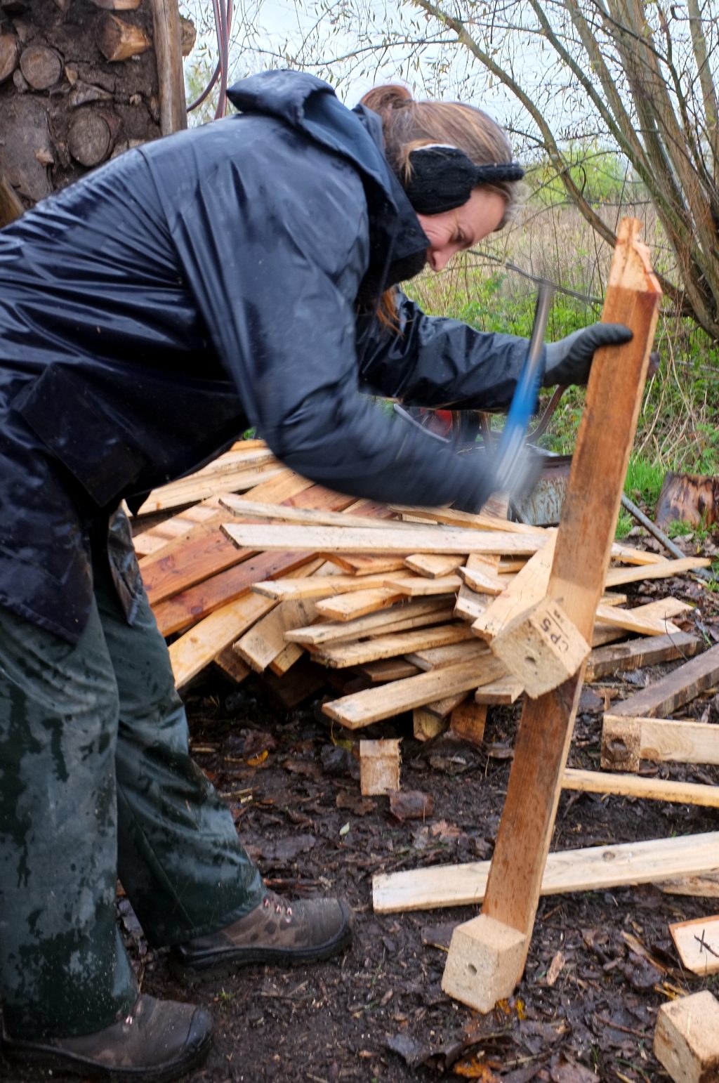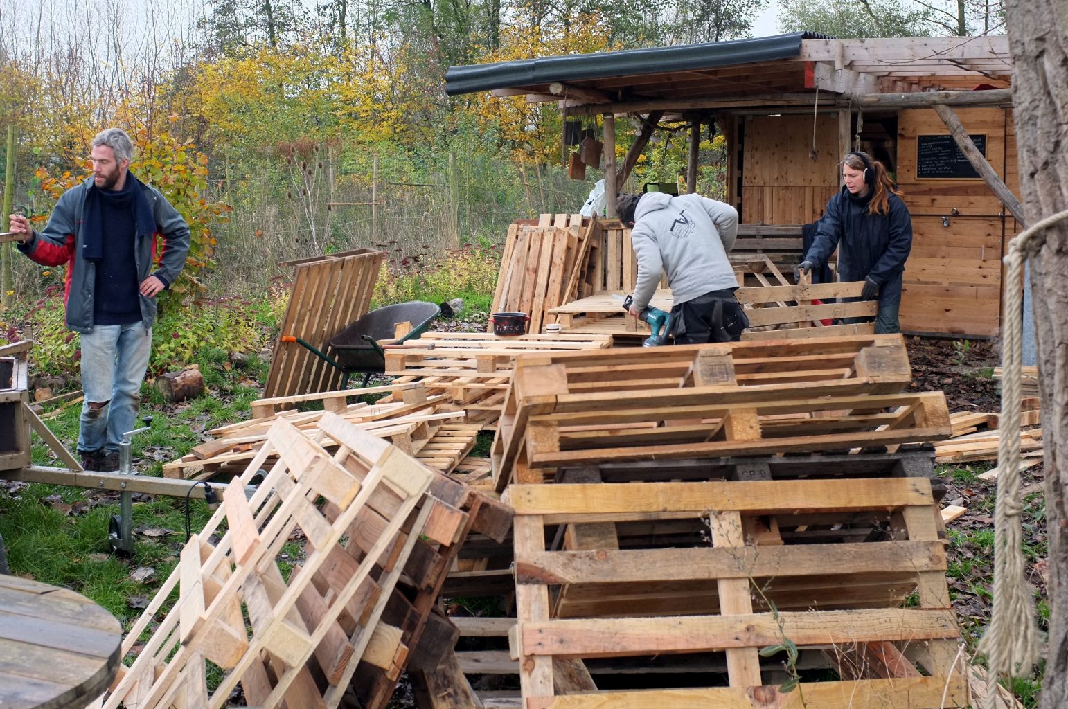Dagen zijn nog korter geworden (zucht). We gingen verder met het kleinmaken van paletten. Regen doet geen zeer, hamers wel. Werken totdat de batterijen op waren. De dag geëindigd met het op maat zagen van bamboe. De bamboestokken gaan we op zondag 8 december gebruiken om de vers aangeplante bomen te markeren.
